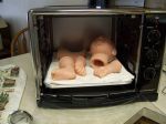 I've used my oven in the past with premie heads & limbs with no problems but this is the first time I've tried a larger head (the Acorn sculpt). Maybe I should have baked limbs first and then the head so I could have centered in the oven more. There seemed to be plenty of room for all of it...