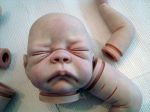 Hi, I am new here. I am working on my first doll. She is Rosie and came with Secrist Kit #3, but looks and feels like a baby boy. I had a mishap with my oven and he melted and now has a tilted head. I am going to complete him anyway as he is a learning experience, the first of many I'm sure. :) I have followed the video in my kit and did an internal purple wash, blushing, and blushing detail. I am unhappy with the arms and leg and am going to strip them and start over. I did veins (without the benefit of the technique sheets, which I have now ordered). I also did some blue shading around the eyes and nose, which was not in the instructions on the video but I had seen in pictures of other "babies". The veins and blue shading may be too dark. He appears pale around the eyebrow area, around the nose and mouth. I have some thoughts on what needs to be done to improve him. I think I need to add some flesh paint, perhaps warmed up with a little yellow ochre ? I think he also needs a light coat of lip color. Of course eyebrows, some moisture on the eyelids and the lips when I reach that point, and eventually hair. Although the kit seems to be a good way to start, I feel I need some tools and paint not included in my kit. I have ordered some Genesis paint which I can mix and thin rather than the premix. Is it ok to put these paints over the baked on premix? Is it ok to put a flesh coat over the blushing detail? And if I paint the eyebrows while waiting for the new paint to arrive, is it ok to put the flesh paint over the eyebrows or do I need to paint the eyebows last? I would appreciate any constructive criticism and knowledge any of you would be willing to share. You will not hurt my feelings. I think your input would be very helpful. The pictures attached were taken outside in natural light though it is a very cloudy, rainy day here. Thanks, Lyn