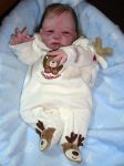My 3rd baby. Any comments/critiques are more than welcome!! I'm also having problems toning down pink (bountigul baby) vinyl. They're vinyl isn't very forgiving, seems like once the paint hits the vinyl it's there for life. right now I'm using the basic (Secrist Reborn) pre-mixed paint set so my options are a bit limited. I'm thinking maybe I should buy the flesh tone set. Any thoughts or suggestions would be awesome!!