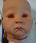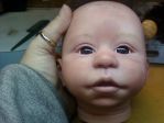 Sorry Sage! I want to hug HIM! He is adorable you must admit. I couldn't find his before and after pics???? I think he looks so cute without the hair so it was a good call. Well, I've finished painting my Molly kit today. Checked on my mohair and "it's in the mail". So I guess I'm done with her until I can get the hair and match it for eyebrows. So here she is....be gentle. BTW my windows is doing some weird contrast thing so I hope it doesn't show here. Critiques and comments welcome.