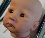 Okay Ladies, so here is my Molly kit still in progress. This is my first attempt at micro rooting with the 43g German forked using the Clover Pen. I'm okay with it as it is much better than the rooting I did on my first two babies. And the eyelashes? Well..... don't like them. I think they are far too long for her age. I'm thinking of trimming them. Thomas is ready and I'm going to start rooting him today. I looked at this bub carefully trying to see where I went wrong. I still see holes! don't know what happened but let me know what you think. Kinda bummed at how she's turning out. I just need to wait for her lashes to set and them assemble.