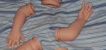 Anyway, I presume most of you are already familliar with Berenguer kits and their overly orange colour. I managed to tone it down with a mix of mint green. Many, many layers of flesh, creases, wrinkles and blush, and there you go :)