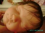 Hi everyone, here's my 2nd reborn-in-progress: Kimberly Ann. She's a Snookie LaBaby Berenguer, with awful hard vinyl. A lovely mold but a nightmare to root. I am working on rooting her hair, and I think I might be done with it, but I can't decide if I want it a bit thicker or not. I did not get the crown swirl quite right, but the vinyl was 'flaking', so I quit trying to fix it. She's my first rooted reborn, so she might be a hat baby (she does look adorable in a bonnet). The first 2 pictures of her rooting are with her hair dry, the others are with her hair wet. If anybody has any opinions on if to add more hair or not, or any comments or suggestions, I'd love to hear them. Thanks.