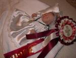 Hello Mina, She is so georgious, nomally a Rosette and a medalion mean she was best of section not 1 st place. knowing a little bit about the judging system in Australia. Keep going ,I dont tink anyone is doing much in the way of tiny sculps in Oz much these days, we all seem to be getting on in years.JuneM from Oz