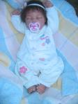 Hi thanks for getting back to me. With my first baby I didn't use Genesis paints and got a very shinny baby but of course I didn't know the term pounce either LOL. I think I jumped in a little too quick the first time before I got enough information. I will attach a pic of her here. The second little guy posted here "Billy" did have his head sanded with a small dremel. I used course sand paper first and then fine. I don't think I really like to do this because it makes a different color in the vinyl, but of course it is covered with hair after. Yes in the duration of doing two dolls I broke about 4 needles. I used size 36 3 barb and tried the 38 but I kinda prefer the 36. The first two babies had lots of hair but I want to try one with just thin scant hair so will probablyuse a finer needle with less barbs. There are just so many ways to try that I will need to do a lot of babies to try all this stuff. I did buy a secrist sculp "Tayla" to try later on when I get better. The little face looks a lot like my grandaugher at birth and Im going to try to recreate her. By the way my first reborn I purchased from a nice lady"Dawn Pecenka - from Once Upon a Daydream Nursery. She did a wonderful job in making a baby that looked like my grandson. After that I was hooked and wanted to try on my own. I have always wanted to collect baby dolls but when you are younger and have a family to take care of and bills to pay its kinda tight money wise. Now that the kids are grown and on their own I have a few more bucks to spend. The lighting for these pics was really bad. I need to take her outside in natural lighting on a nice day and maybe they would be better.....