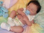 This is Chi-Chi, the only asian baby i've done. He was birthed from a Euro-berenguer, there are lots of things i'd like to change or improve on this baby, namely the eyebrows which i hand rooted but they were way to stark with the depth of the black on the skin colouring, i think if i'd painted the eyebrows he would have looked better - his mummy loves him though and thinks he looks so real, she is the mother of 3 bi-racial boys though and he looked remarkably like her youngest son just by chance (he wasn't a custom order).