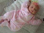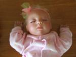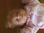 Naomi, She was one of the first three I made for my daughters for Xmas 2007, so I think they will be left as they are. But with the next new ones with the Genesis Paints I will try to root Sweetie Pies eyelashes, but with the other three wit open eyes they will have acrylic lashes or by the way, I was sold them by the teacher, and they were mohair and were very thick. But as for using light lashes on my babies, it's noy on. All of my children and grandchildren have had long dark lashes, that fram their eyes, even my two white haired boys, the same as Tallis, Mitchell and Macey only now she has brown hair and brown eyes. With long dark battering eyelashes. June M from Oz.