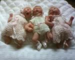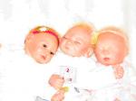 These are the ones I hope I can bring to real life, with Genecis Paints, after I strip them after using heat gun.June M from Oz The three pale ones are Missy, Jamie and Gumdrop Dressed in too pale a clothing to bring out their colouring, But you should be able to see the disaster with the heat gun on the six inch triplets.I also noticed that Gumdrop didn't have her lashes. I also know it isn't good photography.