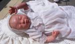 Well here she is at last. She was Born on 17th Sept but I had to sort out my Camera. The wind was blowing her hair a bit. I was unhappy with her colour until I gave her a last wash of mint green. I would do things differently if I was to do her again as she was a difficult choice for a first doll. I love her though.