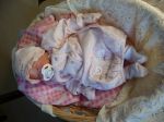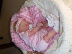 So cute! Wonderful little baby! Congratulations! Her coloring is great, and I love the way you posed her!