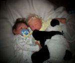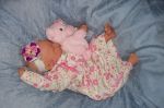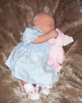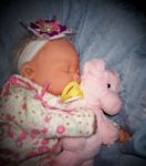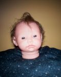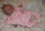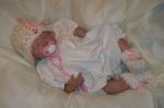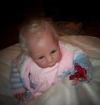 That's the Piper doll. She's in several of the pictures. A friend from Ebay that is named Tina is the one that made the hat and booties. I showed her my dolls and then found out she's been doing them for 5 years. Yikes...that made me think that she must have been laughing at them. But she told me she had to stare at my tow head for 15 minutes before she could think what sculpt it was and that was right after I showed her the same scuplt with a bit body color different and darker blonde hair which was named light brown. So after I saw what color she came out, I added secrist 08 as a top color and it worked pretty good. You know...it was the Secrist vinyl that I was smelling on my Jody baby. I really thought she had something and wasn't telling me. The baby's skin is pretty rough and is dull, not shiny at all, but it's got a pretty 'glow' like to it. I don't know. it doesn't glow...but has a soft look to it.