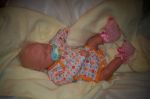 The first baby has a bad forehead.  So I ordered another head...I haven't done it yet.  The booties are from Ebay sellers.  I just look around and get them for like about 1.00 per pair.  I have tons of them and also you get them with sweater sets and hats etc.  I have one friend that can make beautiful hats.  I think I had one on my Piper doll and someone called her a 'sweetie' in here.   Anyway Tina is very reasonable and if any of you would be interested I could ask her about it.