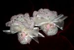 There's a hat and booties on the first baby, and then I made that bow pretty quickly to go with that black and cream dress and then I had a picture of the last part of booties I got from Tina.  It had a hat, but the brim was too big, so she's supposeto send me another one.