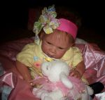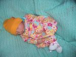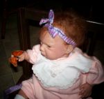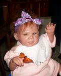 hehe..so I fixed it in a bunch of different ways and sent it out to a bunch of people to have a hair style vote...I think I did the best..hehe..the child is pretty homely. Well..poor kid's an orphan...you ever heard of little orphan..aaaannn...okay..lol I finally passed a test...I took one of my secrist babies out and fooled a whole lot of people...yipeeeeee. Here she is....a Gumdrop.