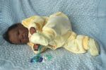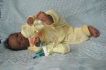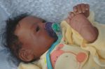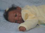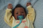 Here he is Riley a aliena Peterson sculpt (BB). He is my first attempt at an ethnic baby and he was harder to do as there are obvious differences but fun and enjoyable. I did his hair after my gransons who is bi-rascial and beatiful of course. I just loved how his hair was so long on the top and big curls.