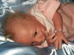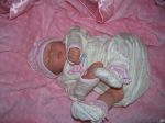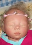 Tomorrow is my first grand daughter's 16th birthday.  She saw one of my Gumdrops and said ....that's the one I love....as soon as I saw her face I knew I loved her.  so..I thought maybe I'd give it as a birthday gift with a very nice Little Me layette.  I decided to add some more hair to her and hope I didn't mess her up.  My mom thinks I don't put enogh hair on my babies????  Like how many babies are born with pig tails???