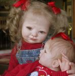 My newest toddler is Celeste. She's 28", and I special ordered 13" long mohair, and microrooted from the very tip ends to achieve her long locks. I also hand rooted her upper & lower eyelashes (that's how I do all my open-eyed girls now). She was way fun to create, and even more fun to do photo shoots of her.