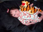I also got Sparrow done. I just love her!! I got some stuff from Anne Geddes website and they have a summer sale going on...I'll try to find the pictures You might not see it, but I put the boots on Morgan and it just says 'can you do this?: I did that to send to my friend. That's little Sparrow in the little dress and hat.