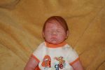 Congratulations on finishing Baby Evan Travis! My best suggestion might be to make his eyebrows slightly lighter--but only if you wanted to make him look younger. After looking at a lot of newborn photos, I've noticed that even if they have black hair, most have very light eyebrows. Some have only a hint of where eyebrows might appear when they get older.