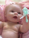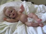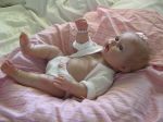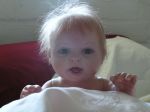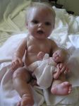 Oh my...I have to give it to you..she is just adorable. I have done two of the Berenguer triplets and just have the boy left to do. I have given the girls the soft body. I intent to fix the vinyl body with holes or punch holes down the sides and this way you can put the body around the soft one if one wants to do that. I just hate the thought of taking that little boys hoo hoo off. lol. I'm sure that's why he's been hiding out for so long. I'm not really happy with the soft bodies only on the tops of it. There is a very small space for a joint but the arms just don't look that great. I will have to post a picture of them and the body that I used.