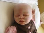 here is a few pic of sam she is not done with rooting yet need more mohair going to high light with a darker calor blond so you can see it. i also put baby tears on the mounth and my son keeps trying to wipe it off, its aso on the creases in the eyes and the cornersof them too but just enough not to much she is sleeping. more when i finesh. also i orded my next doll i think im hooked its eden by marissa may i love the dolls from bb i also like the full leg limb on some of the dolls its easyer to show off on some outfits but she only has 3/4 limbs but she is cute as a butten.