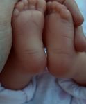 When my babies were born, the bottoms of their feet were very red. When my granddaughter was born, she had those same really red feet. I asked the nurse if all newborns had red feet, and she said they do. So.... depending on how old she is, you may want to redden the bottoms of her little feet a little more.