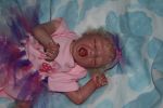 Thank you so much for commenting on my quads Dee. I really didn't notice how bad my pictures are, the mottling on here is way too defined on these pictures, it's not that noticable in real life. And the nails and lips aren't that white or red. however, i used the sweetheart rose paints this time. the bush (i was alittle upset when i got it because it was only half-full and i use more blush than anything, but it is the new kind that is suppost to be more transparent so you use less of it....) , is the color of blood if you put it on very thick, but turns a nice pink after spreading it out some. i also learned that baby tears should NOT be spread on thick or it will turn white. And babytears can be used as glue to apply eyelashes and make eyes moist at the same time. i enjoy doing what i do and it not only makes me really happy, it makes so many other people happy too. i can't wait to begin my next doll, Baby Lulu by adrie stoete. New goals for her will be inserting eyes and creating an asian flesh tone for her. CAN'T WAIT!