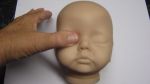 Here I am posting pics of the Blank Naomi, just to show you ladies what we used to Call rule of thumb in the porcelain doll making, which I think still applies to doing eyebrows on Reborns,I you look, I have placed my thumb over the eye, close to edge of nose, the bottom of my thumb in on the under eye crease. The top should be where the Eyebrow is placed. This is just aguide to help you. In some reborns I notice the brows are too long, they should also start from the tear duct and finish just past the end of the eye. I hope this info is of some benefit. XXXXX June PS. The third pic is with my finger just incase you have larger thumbs and or smaller kit.