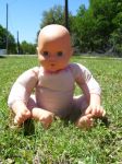 So here's a question for you. I did NOT color match the sculpey, and there is an obvious color difference. How do I go about blending that color better? I was going to paint her blue, but I didn't like the effect, so I stripped her back to natural. I'm not sure how to color a whole baby. LOL