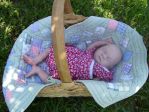 That basket was a good buy. Your baby looks great in it just like that. I'm looking for a jolly jumper I think that's is what they are called. I'd like to hang it in the corner of our arch way between the dining room and living room. Something else the hubby can holler about. OH WELL !!! We have a Salvation Army here. I call it Sally Ann's. I'll have to check it out. Linda