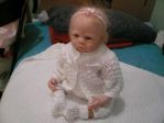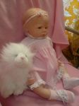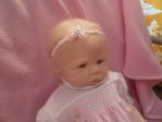 She is 5lbs 6 ounces,20 inches,Light Honey blond hair,brown eyes...I relly don't want to put much more paint on her face,brows and further blushing...but I might