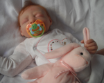 She is very pretty I love her hair too, the color is beautiful. Your bunny is also beautiful. The two of them together make a very sweet picture posed that way