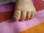 I bought a reborn doll a few months ago and im not sure what happened to the nails but they are looking very dirty from changing her clothes etc and have fluff stuck to them it looks as though the top coat used has come off or is not very good but I am unsure what was used. Help??? Anyone know how I can get it clean as it looks horrible? :0(